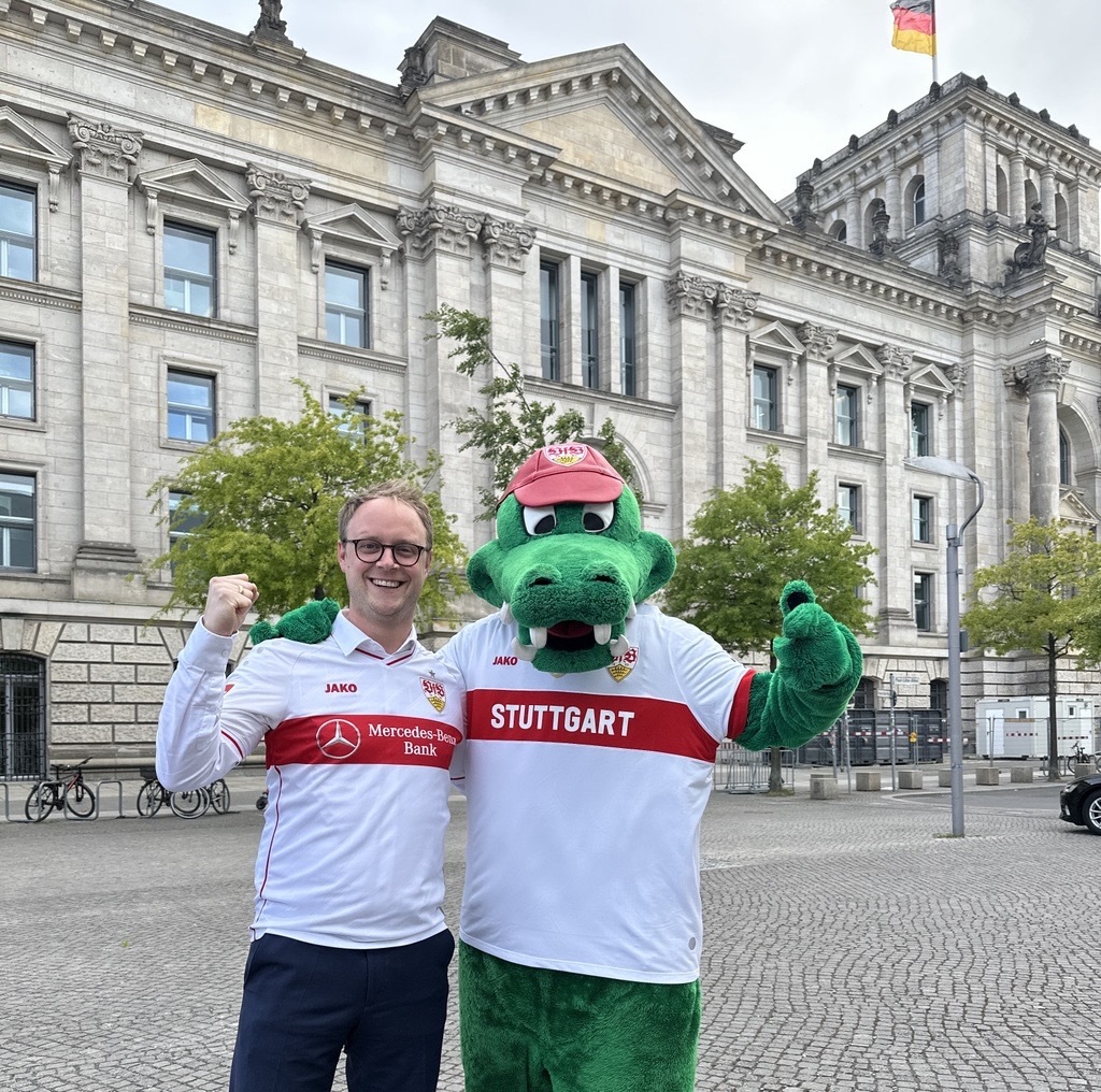 Kurz vor dem Pokalfinale des VfB Stuttgart in Berlin habe ich das Fritzle getroffen und sogar ein Interview mit ihm gegeben – und jetzt bin ich sogar stellvertretender Vorsitzender des VfB-Stuttgart Fanclubs im Bundestag. Ich freue mich – und hoffe, ihr VfB-Fans da draußen fühlt Euch gut vertreten!