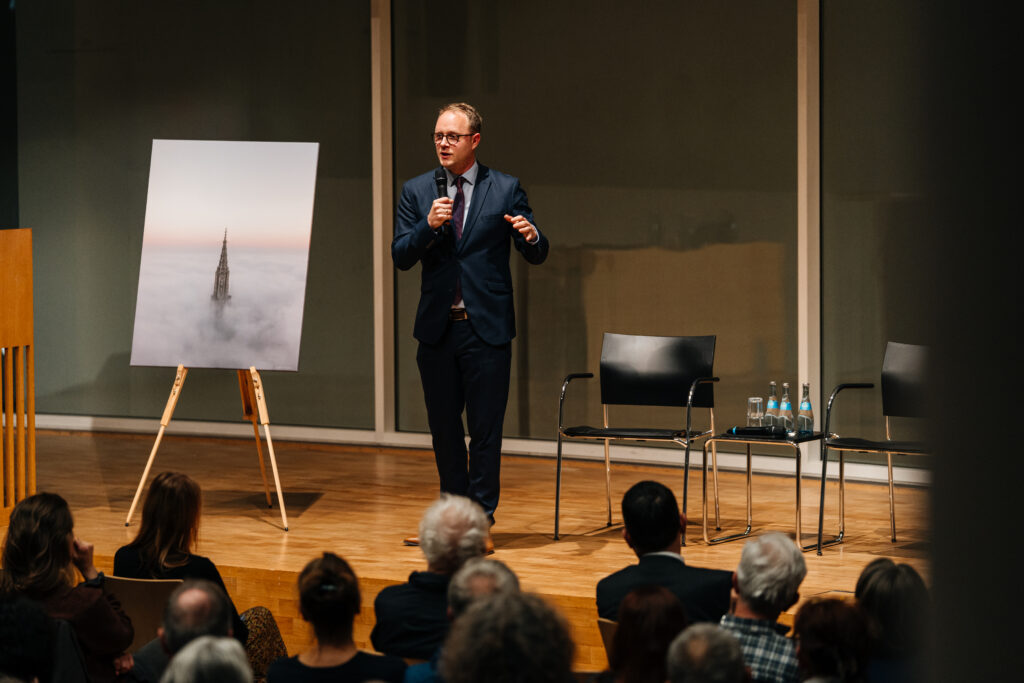 Faschismus und Gegenstrategien: Das war mein Nebelempfang 2025 3. November 20253. November 2025 Woran erkennt man Faschismus im 21. Jahrhundert – und was haben Elon Musks Mars-Pläne damit zu tun? Auf diese Fragen – und viele andere – gab es bei meinem Nebelempfang am 28. Oktober Antworten. Zu Gast war in diesem Jahr die österreichische Wissenschaftlerin und Rechtsextremismus-Expertin Natascha Strobl, die aus Interviews, Podcasts und von ihren Social Media Profilen bekannt ist. Seit Jahren forscht zu Autoritarismus, Gewaltbereitschaft und Angriffen auf demokratische Strukturen und hat im Buch „radikalisierter Konservatismus“ herausgearbeitet, wie konservative Parteien die Talking Points der extremen Rechten übernehmen. Ein Thema, das angesichts der Stadtbild-Debatte, aber auch Blick ins europäische Ausland und in die USA kaum aktueller sein könnte. Mehr als 200 Zuschauerinnen und Zuschauer, darunter Bürgermeister und Vertreter*innen aus Wirtschaft, Wissenschaft und Bildung, waren ins Stadthaus gekommen. In einem Grußwort betonte der Sprecher für Wissenschafts- und Hochschulpolitik, Michael Joukov, die Bedeutung von Geistes- und Sozialwissenschaften. In einer Demokratie gehe es darum, „jeden Menschen als Menschen zu achten“, machte der Ulmer Landtagsabgeordnete der Grünen klar – und darum brauche es nicht nur MINT-Fächer, sondern auch solche, die sich den Menschen und ihrem Zusammenleben widmen: Die Grünen im Land setzten sich mit Cem Özdemir an der Spitze auch im Landtagswahlkampf dafür ein. An einen Kanzler gibt es andere Erwartungen Gastgeber Marcel Emmerich schlug in seiner Rede den Bogen von der Stadtbild-Debatte bis zu hybriden Bedrohungen. Bei Merz Stadtbild-Äußerung sei für die Menschen vor Ort „wenig herumgekommen“: Von einem Kanzler erwarte er, dass er zum einen deutlich formuliere, welche Probleme es gibt – und andererseits ganzheitliche Lösungen suchen, anstatt pauschal Migration als Problem darzustellen. Angst und Bange werde es ihm, wenn aktuell wieder über eine Abschwächung von Klimazielen oder erneut über das Verbrenner-Aus diskutiert werde, sagte Emmerich: Manche Kippunkte seien bereits überschritten, Korallenriffe unwiderruflich zerstört. Dabei gehe es nicht nur um die Verantwortung als reiches Industrieland, sondern auch darum, nicht abgehängt zu werden – China investiere massiv in E-Mobilität und Erneuerbare Energien. „Deswegen ist Klimaschutz auch immer eine Frage der Resilienz.“ Resilienz stand auch im nächsten Abschnitt seiner Rede im Fokus: Emmerich zitierte aus der Anhörung der Sicherheitsdienst-Chef*innen im Bundestag, die deutlich gemacht habe, dass es tagtäglich hybride Angriffe auf Deutschland gebe und kritische Infrastruktur ausgespäht werde. „Es kommt im Alltag der Menschen an“, sagte er mit Blick auf die Drohnensichtungen am Münchner Flughafen. Ohne Panikmache ginge es darum, sich wehrhaft aufzustellen – gerade auch bei Bevölkerungs- und Zivilschutz. Hier wolle er auch Mut machen: Es gebe sehr viele gute Leute in den Behörden und Einrichtungen und viel Engagement zum Schutz unserer Demokratie. Um Gegenstrategien ergreifen zu können, sei es auch wichtig zu verstehen, wie die Strukturen hinter den Angriffen funktionieren und wie der Faschismus sich auswirkt, leitete Emmerich schließlich auf Natascha Strobl über. Faschismus dreht sich um die Frage: „Wer darf dabei sein und wer nicht?“ Faschismus sei eine „Praxis der Gewalt“, die immer dann Aufwind habe, „wenn die demokratische Gegenwart als unerträglich wahrgenommen wird“, erklärte Strobl. Dabei spielten auch verzerrte Wahrnehmungen, Kulturkampf und Verschwörungsideologien eine Rolle, arbeitete Strobl heraus. Faschismus habe verschiedene Ausprägungen, im Kern gehe es um die Frage, „wer darf dabei sein und wer nicht?“. Aktuelle faschistische Strömungen führten eine „Revolte gegen die Postmoderne“ – die sich unter anderem in den Kulturkampf-Themen zeige – und verfolgten das Ziel, die „weiße Christenheit“ vor ihren vermeintlichen Bedrohungen zu schützen. Der Faschismus könne dabei immer weiter selektieren, wer ausgeschlossen werde – von Schwarzen Menschen über Arme bis hin zu Kranken, Behinderten oder Alleinerziehenden könne aufgespalten werden, „wessen Leben sich schickt und wessen nicht“, führte die Wienerin aus. Unterstützt würden die Strömungen von Industrien, die davon profitierten – aktuell vor allem die Tech-Industrie. Und so passten auch Peter Thiel und Elon Musk ins Bild, die von „Neo-Monarchismus“ mit CEOs an der Spitze träumen (Thiel) oder mit Plänen zur Mars-Besiedelung sicher nicht die ganze Menschheit retten wollten (Musk). Wer hilft Dir, wenn Du Dich auf den Staat nicht mehr verlassen kannst? Als Gegenstrategie nannte Strobl vor allem Gemeinschaft: „Wer hilft Dir, wenn Du Dich auf den Staat nicht mehr verlassen kannst?“, fragte sie und antwortete: Nachbarn, Vereine, Kolleg*innen – „die Leute aus Deinem nächsten Umfeld“. Diese Infrastruktur müsse man stärken. Auch zum Selbstschutz. Zum Abschluss und in der anschließenden Diskussionsrunde plädierte Strobl dafür, auf Menschen zuzugehen und nach konkreten Anliegen und Sorgen zu fragen. Dieser Forderung schloss auch Marcel Emmerich sich gerne an: Politik müsse auch vor Ort sein, an Türen klingeln und ins Gespräch kommen. Konkret solidarisch wurde es zum Abschluss des Abends auch noch. Moderatorin Dana Hoffmann und Marcel Emmerich begrüßen Stefan Brandt auf der Bühne: Der Leiter der Sozialen Dienste des DRK Ulm durfte selbst die Spendenaktion anmoderieren, in der wieder Geld für Schoko-Nikoläuse gesammelt wurde: „Damit die Kinder aus den Familien, die zu uns in den Tafelladen kommen, nicht erst zu Ostern einen Nikolaus bekommen.“ Seine Bitte wurde gehört: Mehr als 800 Euro landeten in der Spenden-Box am Ausgang.